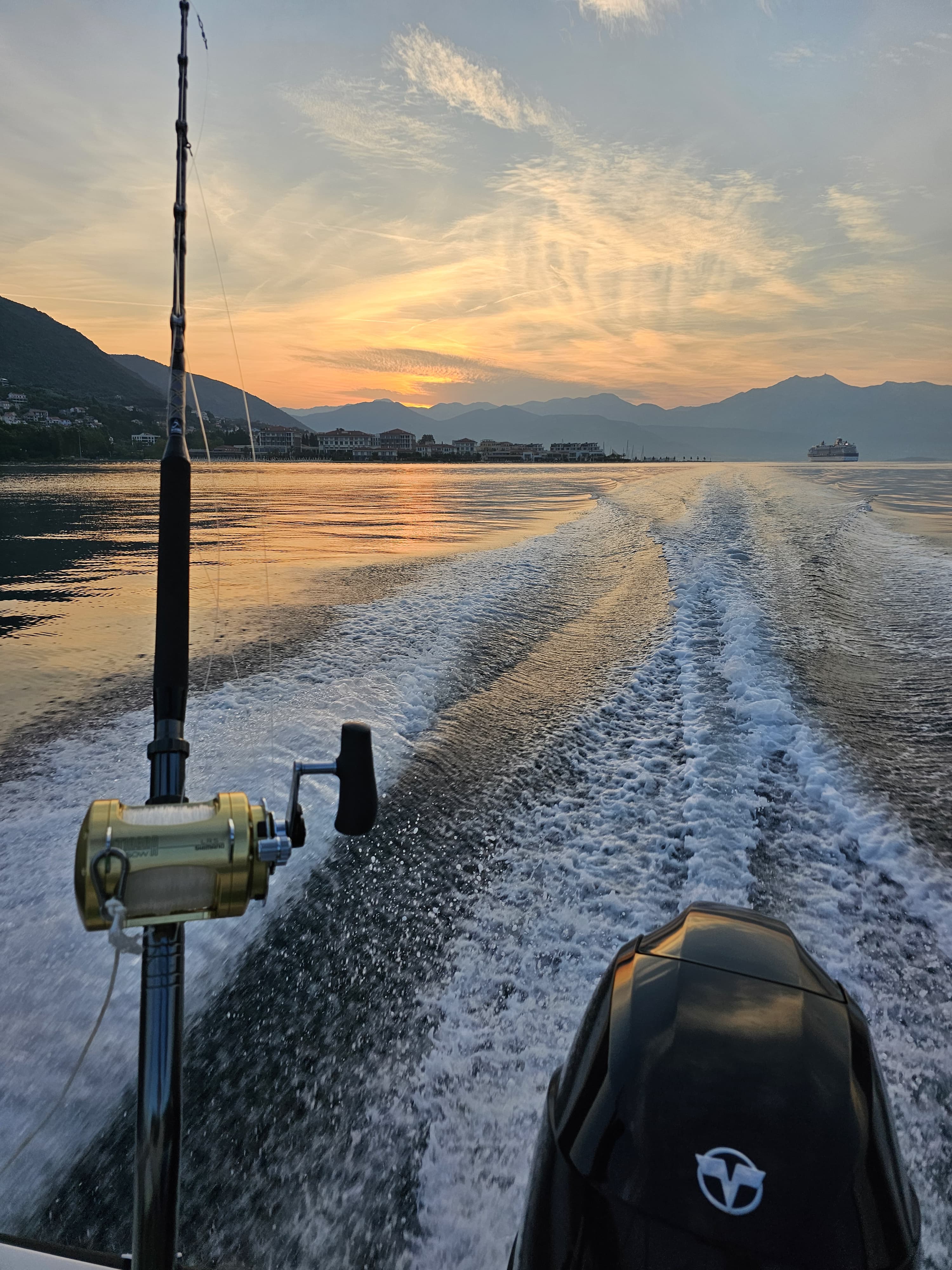 We leave the bay, pass the island of Mamula, and then head into the open sea, into the endless blue. The boat will remain stationary directly above the reef with the help of an electric motor connected via sonar and GPS, significantly increasing the chances of catching fish.