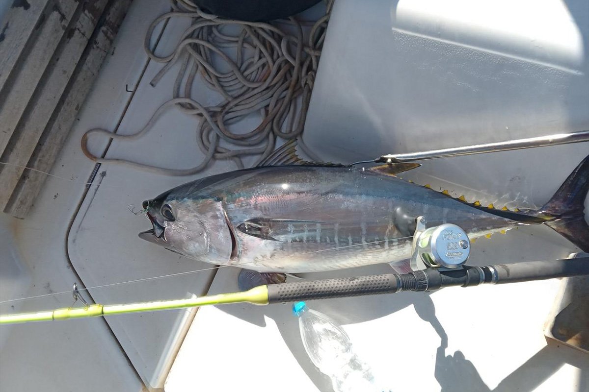 While waiting for tuna, we can use the Bolentino technique to catch other fish around the reef and from the bottom.