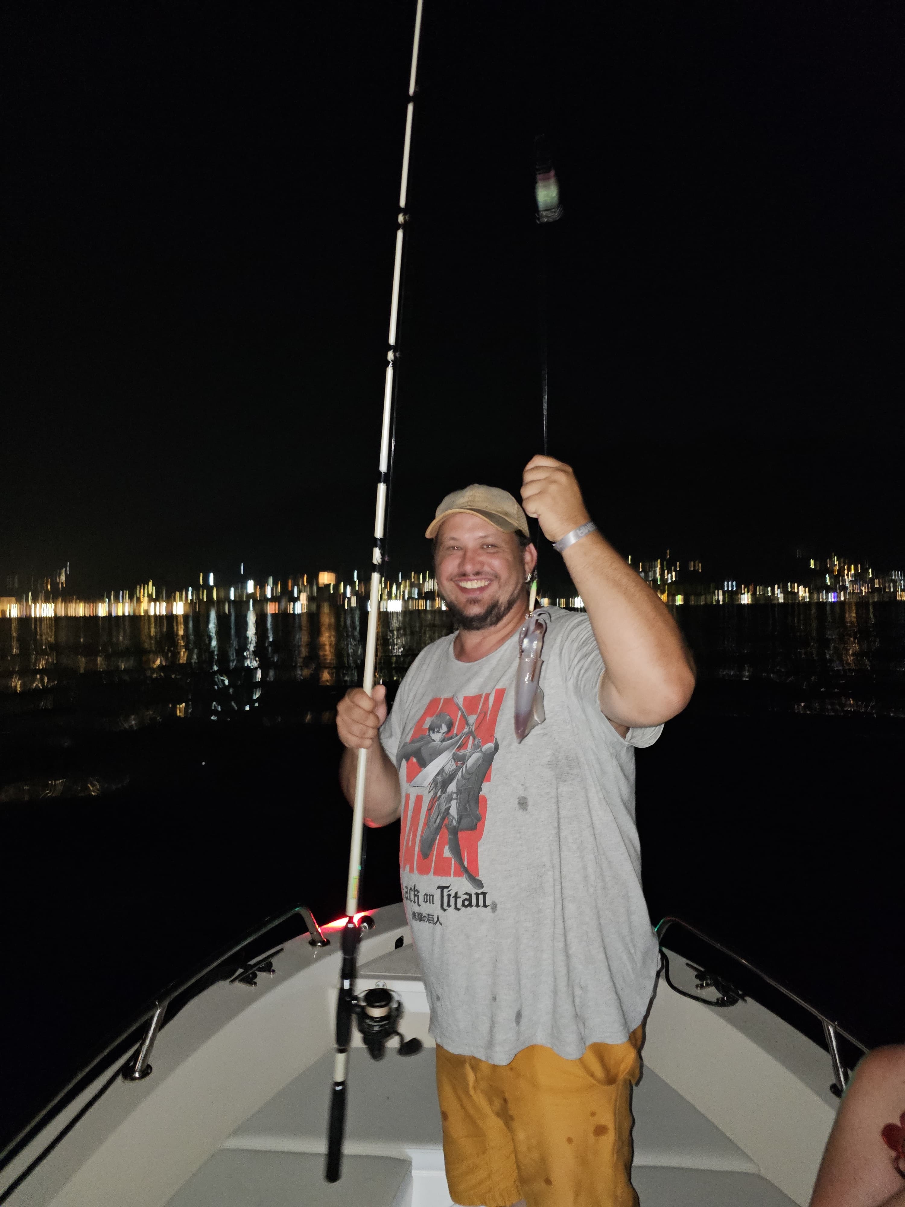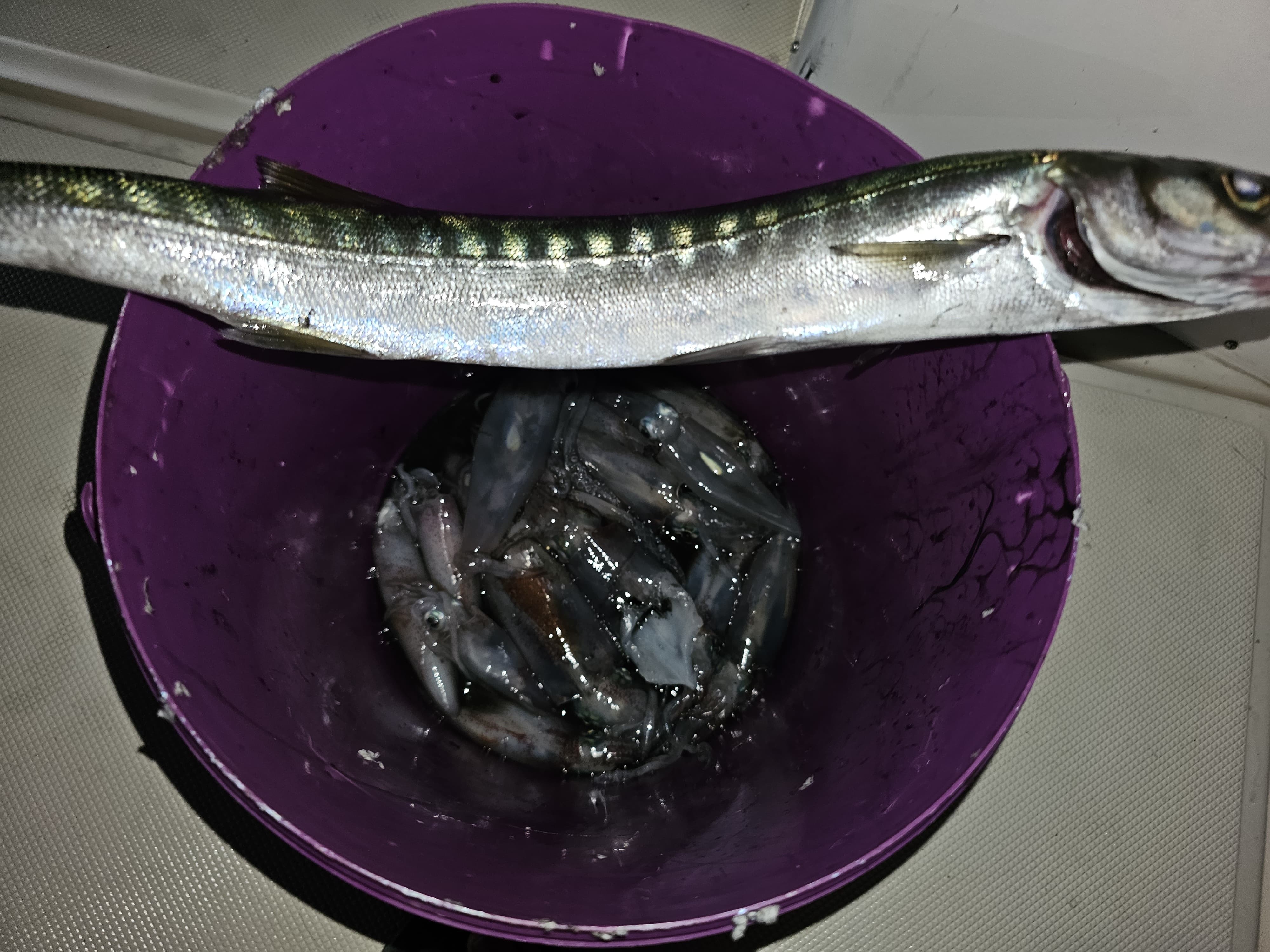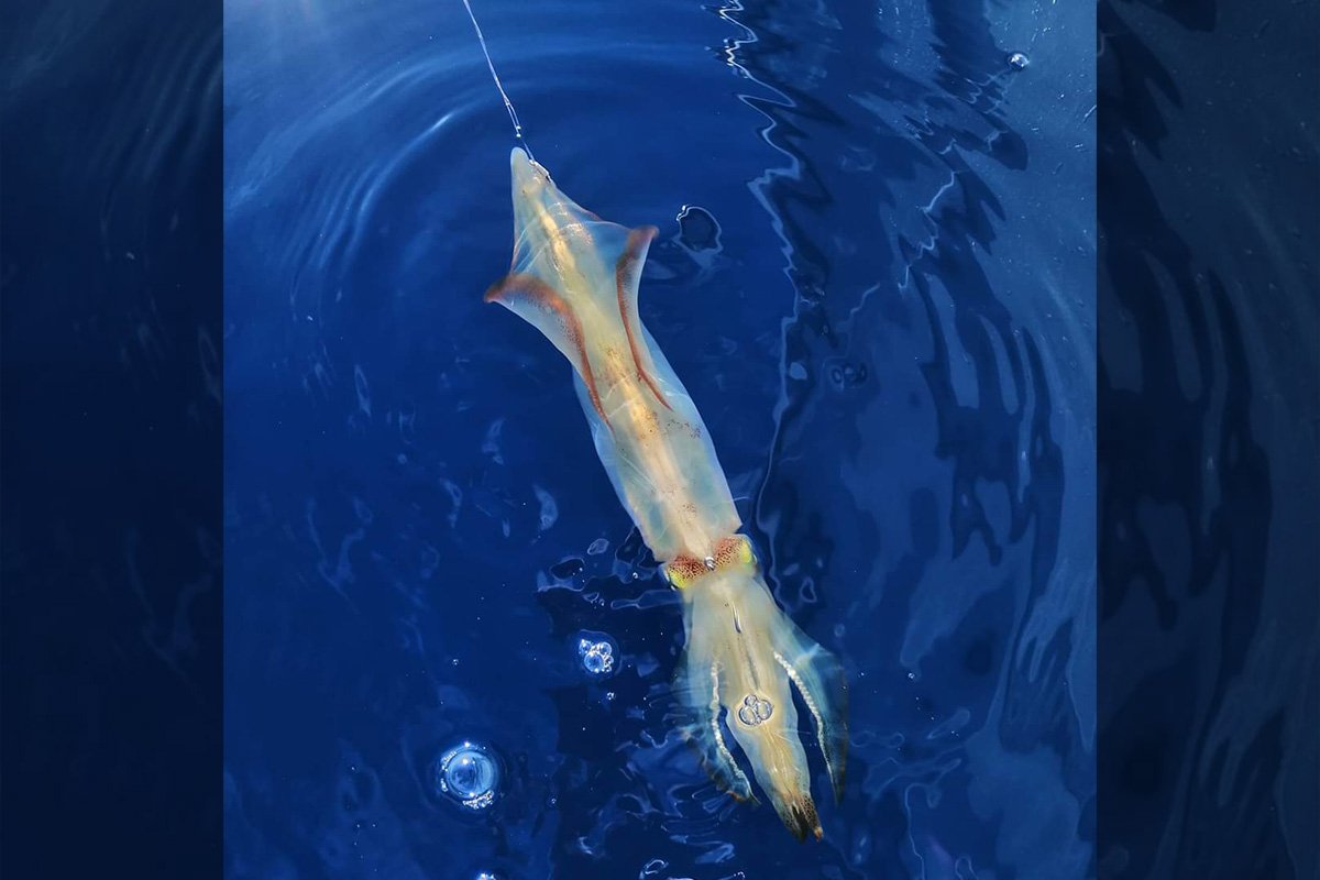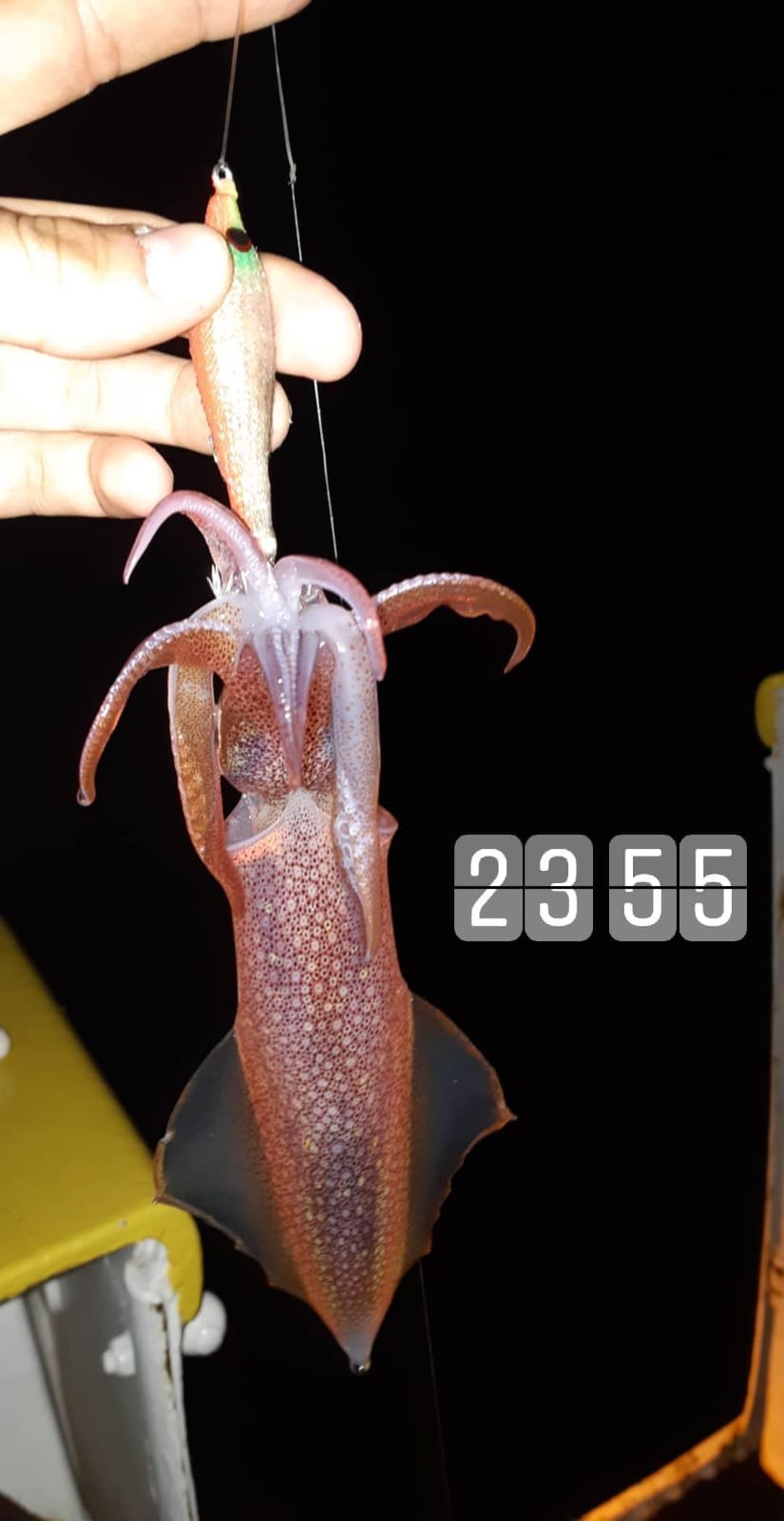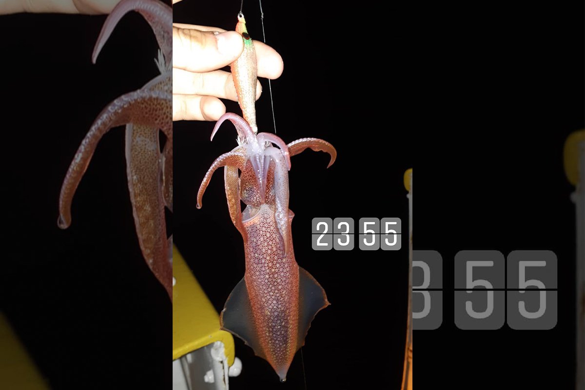 As the sun sets behind the horizon, we move to a squid fishing spot, where we can continue using the same technique for another 40 minutes.